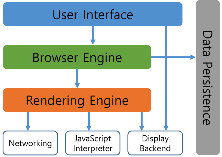 - Browser Engine : User Interface와 Rendering Engine을 연결하는 부분