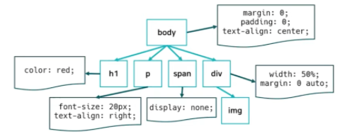 위의 CSSOM tree를 보면 body tag 안에 있는 span 태그의 font-size는 16px, color는 red 이다.