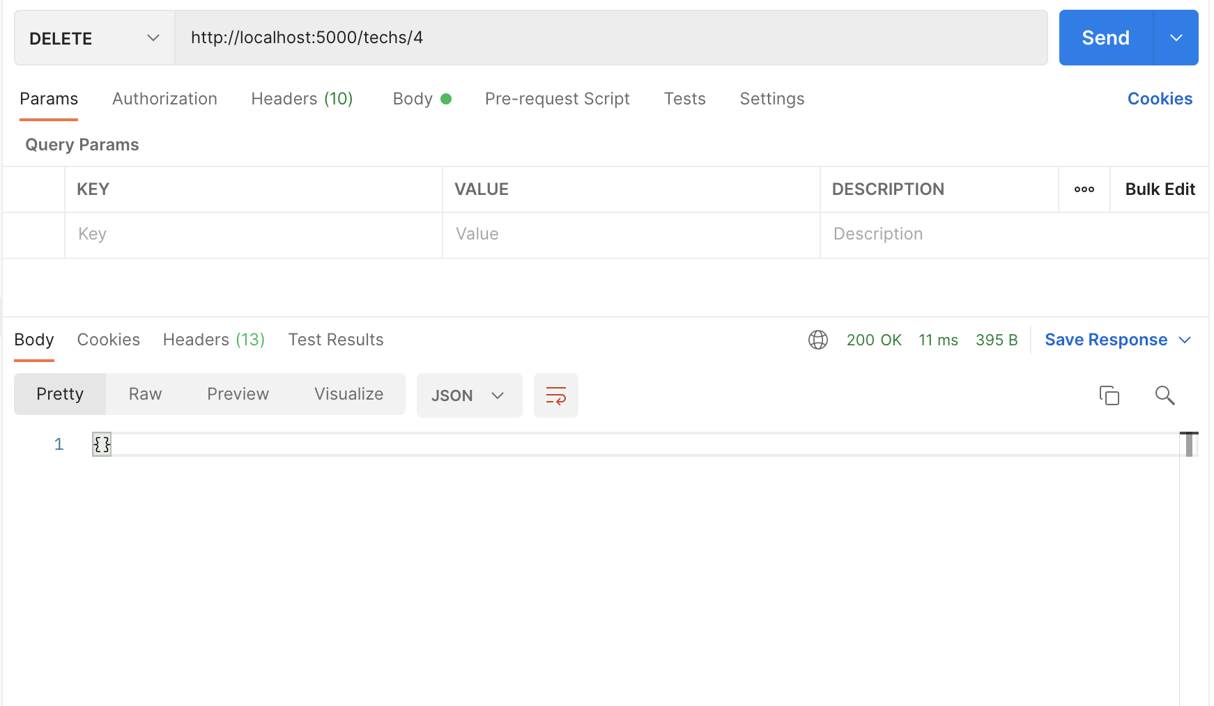 이렇게 빈 오브젝트가 나오는 것을 볼 수 있고, 역시 GET 요청을 해보면 삭제 된 것을 확인할 수 있다!!