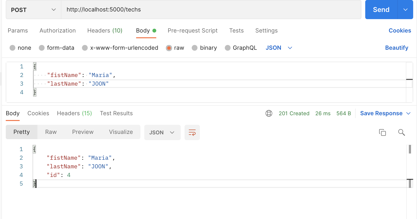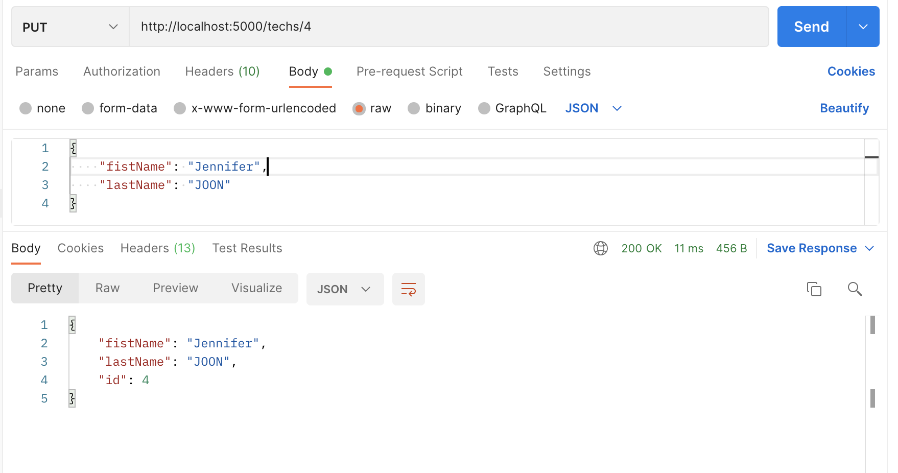 http://localhost:5000/techs/4 라고 하여, 금방 만들었던 Maria JOON에서 Maria라는 부분만 수정해보겠다.