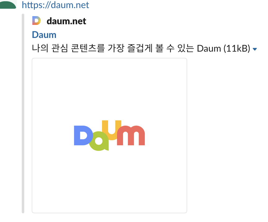 이제 사이트를 카카오톡, 슬랙 등으로 옮겨보면 내가 원하는 이미지와 설명이 나와있을 것이다!