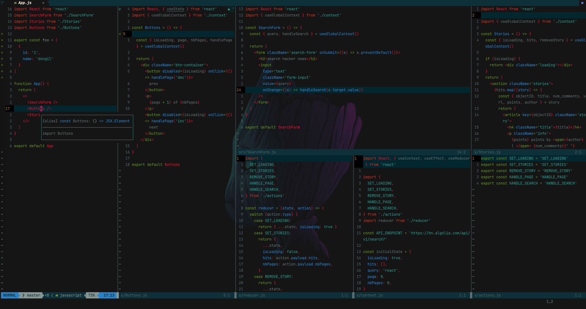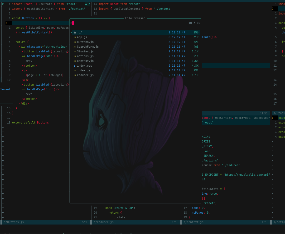 그래서 vi 사용법에 대해서 공부를 했고 지금은 회사 프로젝트는 webstorm 안에서 vim을 사용 중이며, 개인적인 프로젝트나 공부는 다 neovim + tmux를 사용하고 있다.
