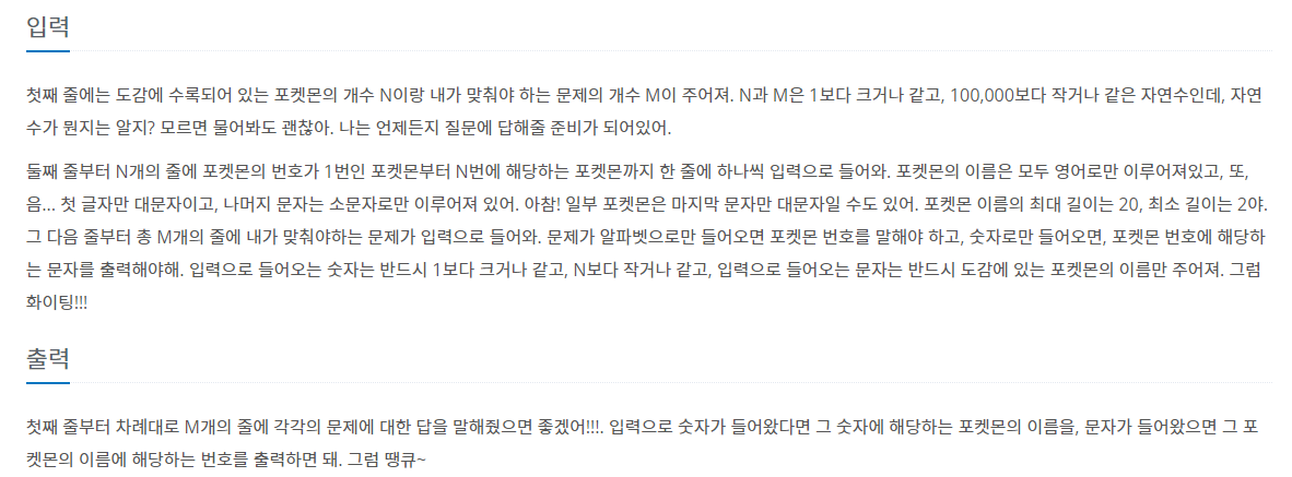 N은 포켓몬의 개수, M은 쿼리의 개수이다.