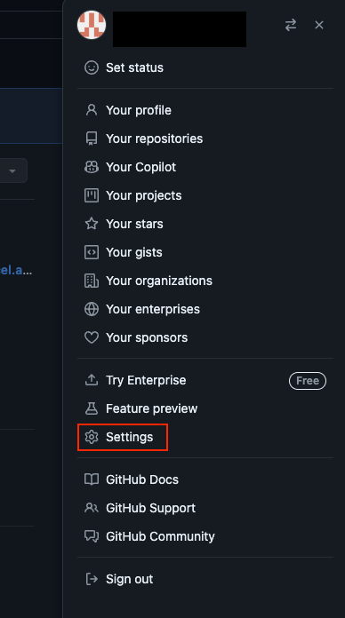 1. github 계정 로그인 후 오른쪽 위의 프로필을 클릭 -> Settings