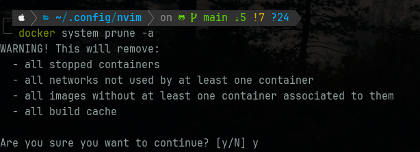 이렇게 원인을 발견했다면 docker prune을 사용하면 된다.