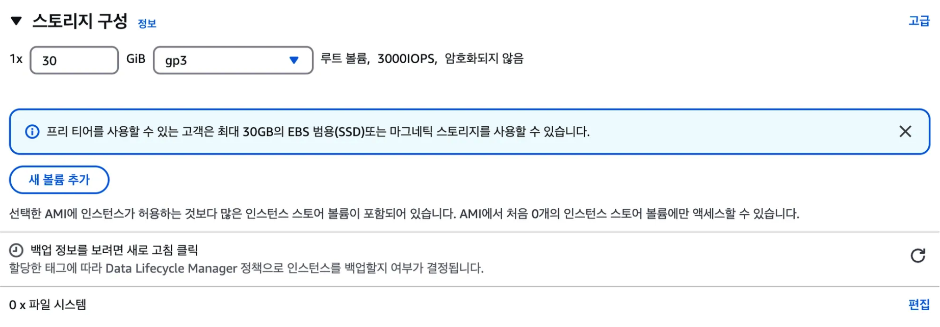 만약 프리티어를 사용하고 있다면 현재는 30GB까지 무료이므로 30으로 수정해도 무방하다.