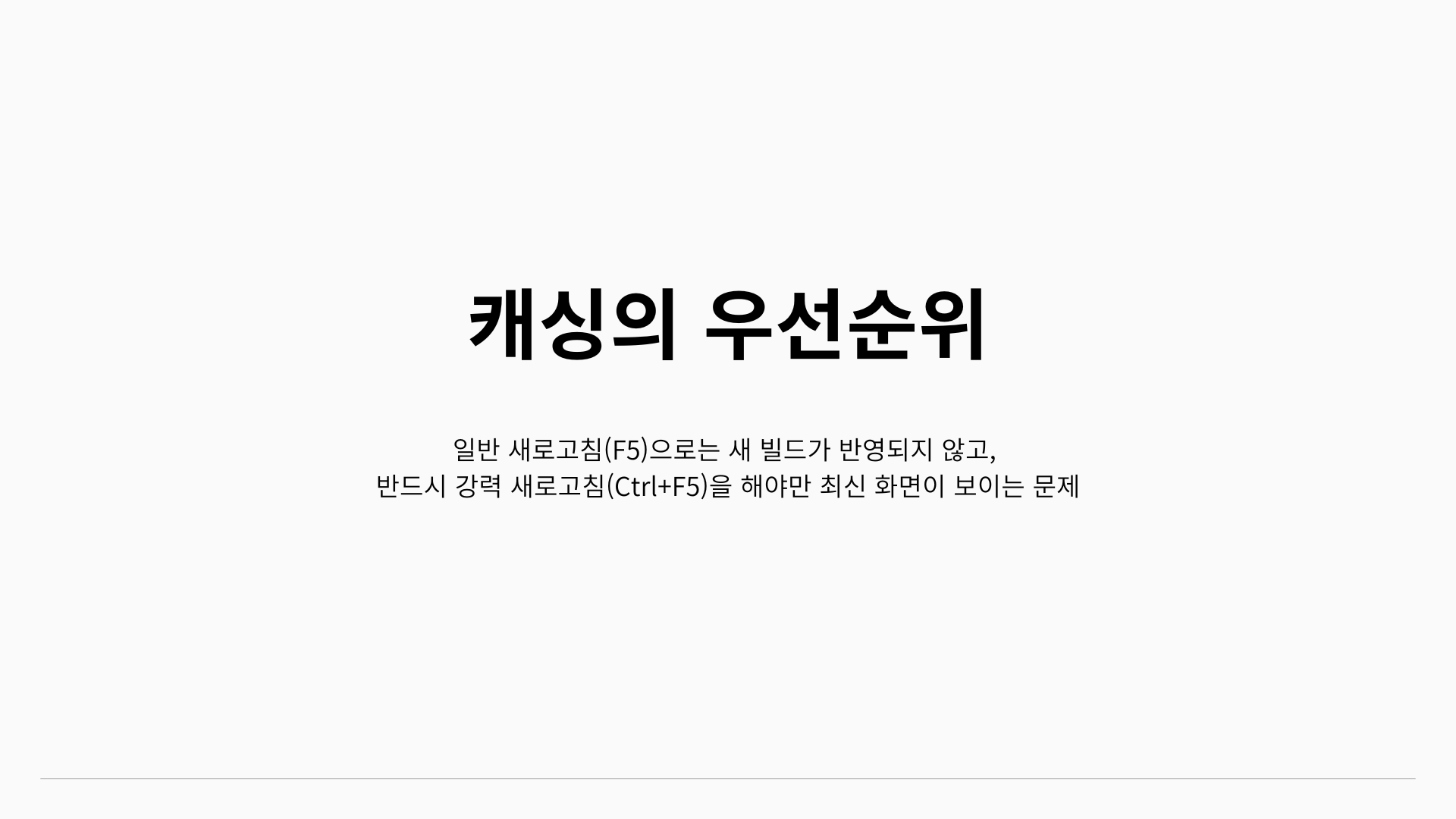 문제 2. 강력 새로고침 하면 최신의 빌드가 잘 나오지만, 이 후 일반 새로고침 하면 다시 과거의 버전으로 돌아간다
