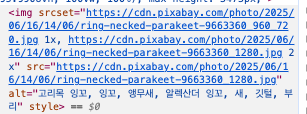 pixabay와 마찬가지로 jpg를 이용해서 img 태그의 src 속성을 사용해 웹에서 렌더링 시켜서 보여주고 있다.